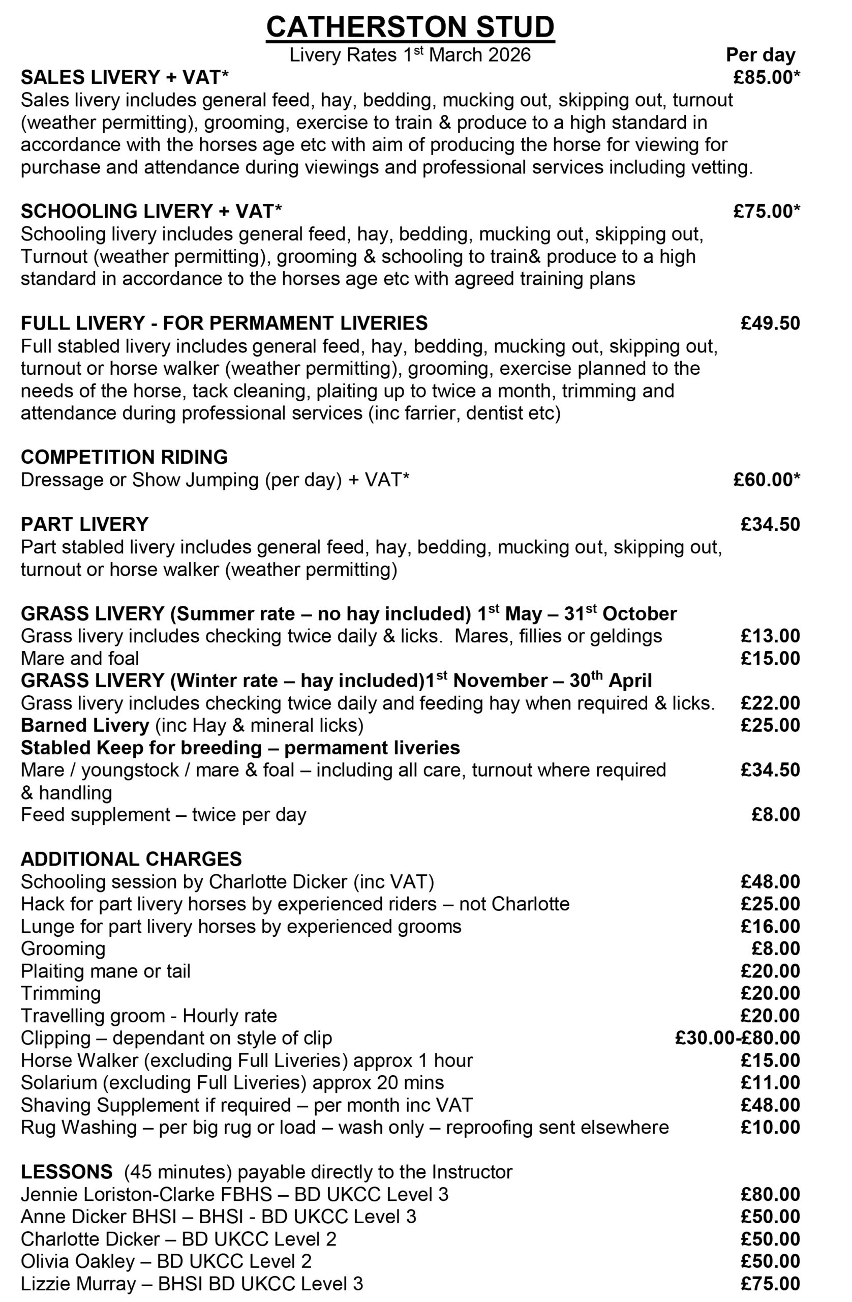 Owners are invoiced each calendar month, however we ask that owners pay a deposit of 4 weeks basic livery to secure a place.